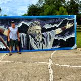Weighing in at nearly 200 pounds, my seasoned installers transported, delivered and hung this 6.5’ x 16’ creation seamlessly despite dodging tropical bands of heavy rain blowing through from the Bahamas.